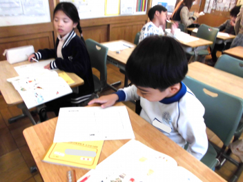 • 6年生が教室と児童会室を使って、書写「書き初め」に挑戦していました。『四季の美』という字を書きます。字画が多く、バランスを考え形を整えるのが難しい課題です。学習したことを活かして、冬休みに家庭で清書を仕上げてください。頑張ってくださいね。