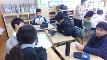 キッズチャレンジビジネスの校内販売から1か月が経ち、「諸経費」「売上」「利益」について確認をしました。その後みんなで、「利益をお世話になった双葉小へ還元しよう。」ということになり、班ごとに話合いをしました。