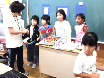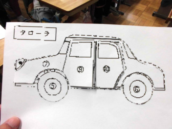 その前段階として、子供たちが自動車(部品)に関心・興味が湧くよう、自動車の簡単な模型づくりをしました。