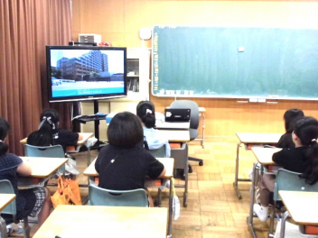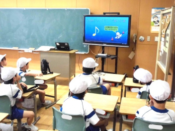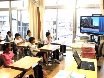 朝の「ふたばタイム」には全校で、『交通安全を考えよう』の取組を行いました。交通安全担当者からの話の後、子供たちは横断歩道がない交差点の渡り方について動画を用いて再確認し、自分の日常を振り返りました。