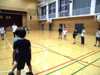 初めて「新体力テスト」に挑戦する1年生が、「20mシャトルラン」の練習をしていました。まずは教室で「20mシャトルラン」のやり方を動画で確認しました。次に体育館へ移動し、準備運動を行った後、いよいよ音声に合わせて「20mシャトルラン」を実際に走ってみました。長い距離を一定のリズムで走ることは、1年生にとってなかなか難しそうでしたが、およそのやり方は理解できたようです。頑張りました。