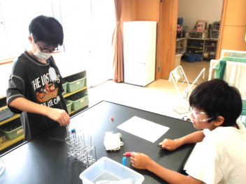子供たちは安全に留意しながら、友達と協力して実験することができました。