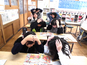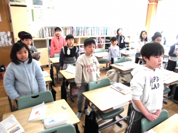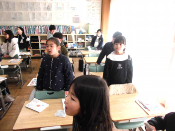 • 3年生が『音訓かるた』を楽しんでいました。読み札の文章には、音読み・訓読み両方の読み方の漢字が入っています。