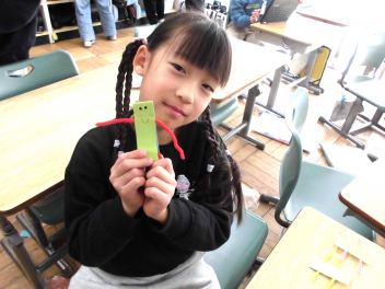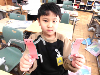 • 1年図画工作科「すきまちゃんの すきな すきま」では、子供たちが身近な材料を使って、教室などの隙間に入るようなオリジナルキャラクター『すきまちゃん』を作りました。試行錯誤しながら作る中で、子供たちの『すきまちゃん』に対する愛着が高まっていきます。『すきまちゃん』に話しかけながら遊ぶ子供もいました。