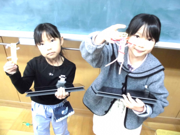 • 2年図画工作科「どうぶつにのった わたし」の学習では子供たちが、自分が好きな動物を決め、その動物に乗った自分の楽しそうな姿を粘土で表現していました。完成した作品は記念になるよう、自分で写真を撮ってデータを保存しました。