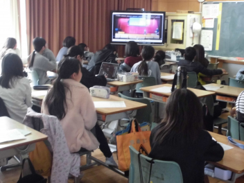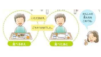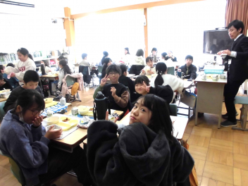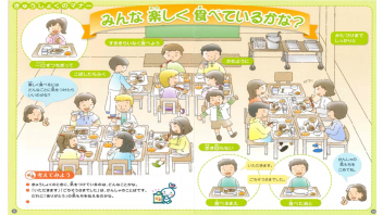 • 今日は、「こころの日」。給食の担当教師が、朝の活動の時間に放送で、「食事のマナーやバランスよく食べることの大切さ」について話をしました。子供たちは動画視聴を通して、日頃の自分の行動を振り返ることができました。