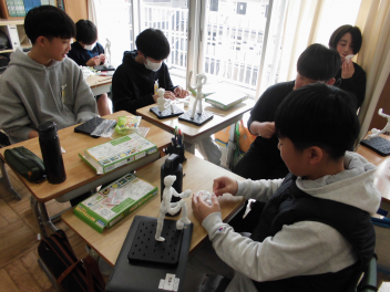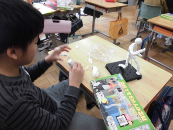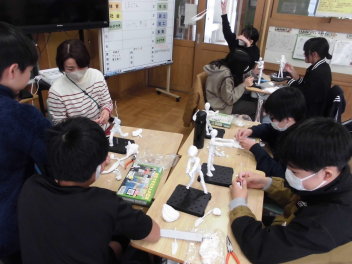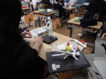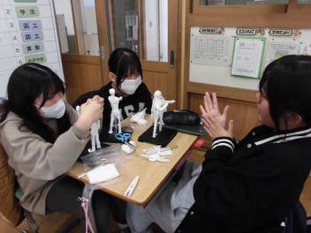 • 6年生の図画工作科の学習「未来のわたし」。将来の夢や憧れの職業などを思い描きながら作っていきました。ポーズも自分で考えます。いろいろな角度から見て、自分らしい未来の姿を一人一人、思い思いに表しました。