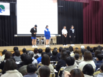 • 6年生の該当する子供たちとその保護者が、「南部中学校新入生入学説明会」に参加しました。生徒指導・保健・事務についてなど教職員からの説明とともに、生徒会の生徒たちによる学校生活の様子を紹介する寸劇もあり、6年生の子供たちは説明会を通して、中学校への進学について希望や期待を膨らめられたことと思います。