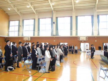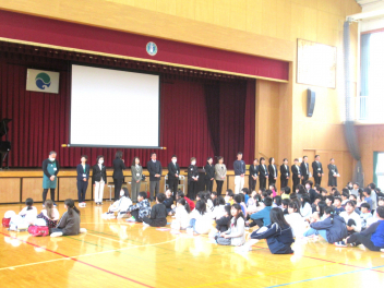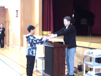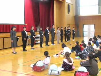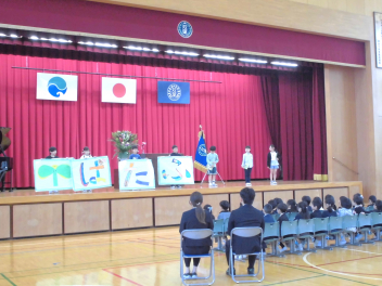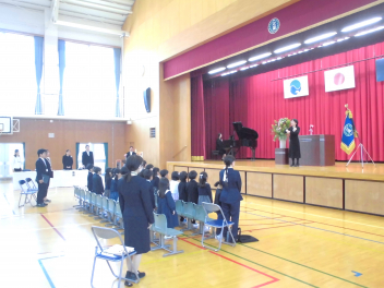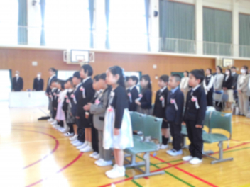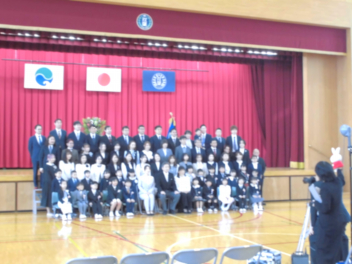 結びにあたり、本日、御多用の中、御臨席を賜りました、海老塚自治会長 二橋雅夫(にはし まさお)様、砂山町第四自治会長 河邊忠一(かわべ ただいち)様、高い所からではありますが、厚く御礼申し上げます。ありがとうございます。新1年生が健やかに成長するための、地域の皆様のお力添えを、どうぞよろしくお願いいたします。