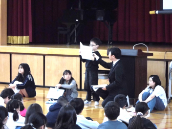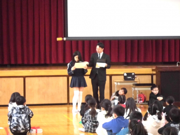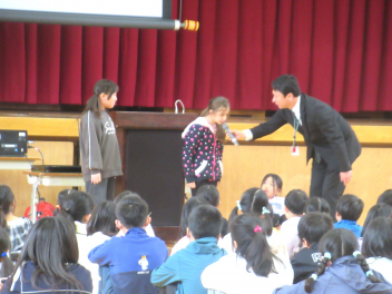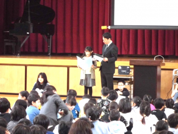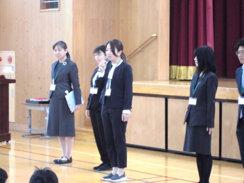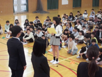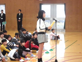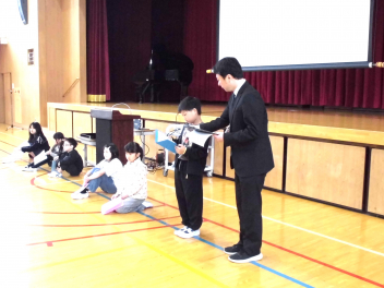 新任式の後、「1学期始業式」を行いました。6人の代表児童が全校の前で、『1学期に頑張ること』を堂々と発表しました。一生懸命な姿が輝いていました。かっこいい!