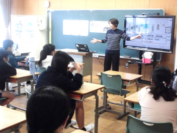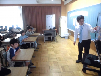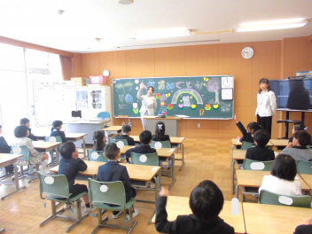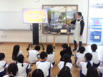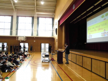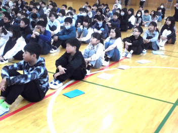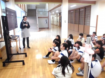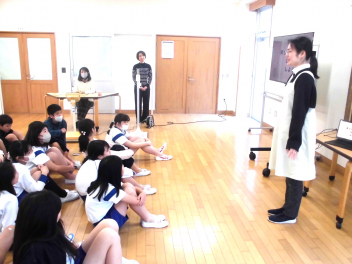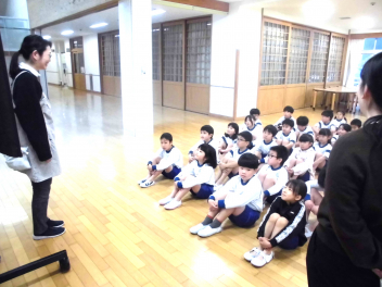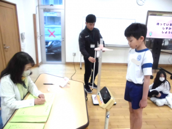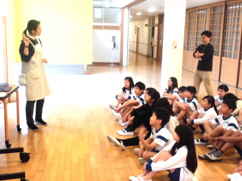 子供たちは計測の前に、養護の先生から保健室の利用の仕方や身長・体重の計測方法の説明を受けました。