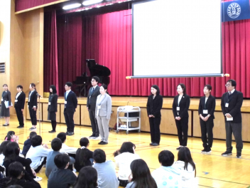 令和8年度のスタートです。始業式を前に、本年度、双葉諸学校に赴任した先生方の「新任式」を行いました。子供たちは笑顔と拍手で新しい先生方をお迎えしました。6年生の代表児童が、双葉小学校の特色を紹介したり、新しい先生方一人一人を温かく迎える気持ちを伝えたりして、堂々と言葉を述べました。また、先生方からも、双葉小学校で楽しみにしていることをお話いただきました。とても素敵な出会いの時間となりました。