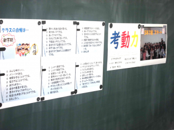 • 5年生の子供たちは担任と一緒に、一年間の見通しや目標をもつことができるよう、年間の行事や活動について確認しました。5年生の合言葉は、『考動力』。私もみんなも楽しく幸せになるために、『気づき・考え、行動』していこう・・・。素敵な合言葉ですね。