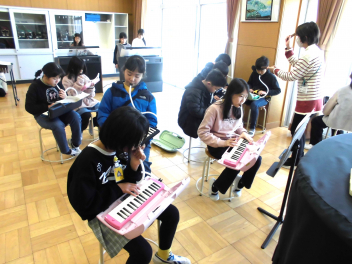 • 今週末の「ふたばっ子発表会」に向けてラストスパート!4年生は『世界を旅する音楽室』の合奏をさらによくしようと、音楽室で練習していました。それぞれの演奏が上手になってくると、どうしてもテンポが速くなってしまいます。今日は、楽器ごとのパートに分かれ、テンポを合わせられるように特訓しました。