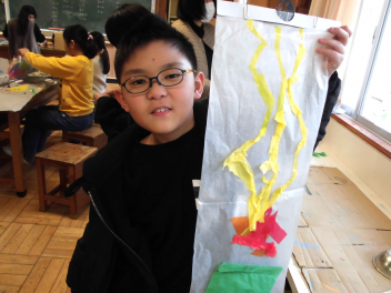 • 4年図画工作科「光とかげから生まれる形」の学習では、子供たちが素敵な作品を完成させました。子供たちが嬉しそうに完成した作品を見せてくれました。