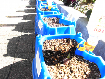 暦の上で、今日は立春です。1年生が大切に育てているチューリップは、かわいらしい芽が出始めました。