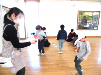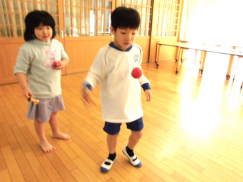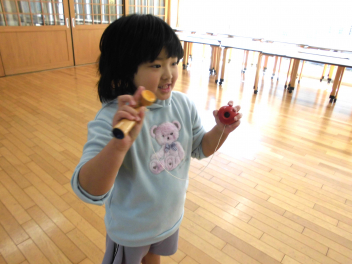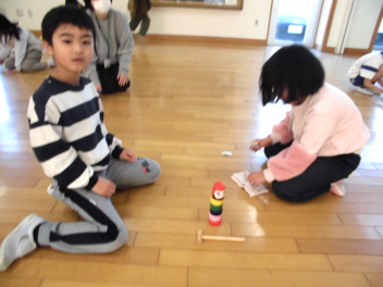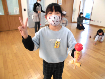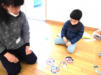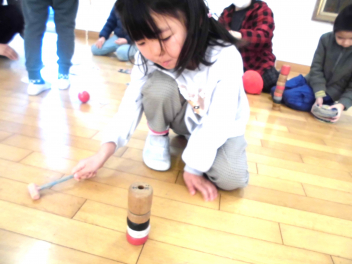 • わかば学級の1年生が、けん玉・めんこ・達磨落としなど、『昔の遊び』を楽しんでいました。