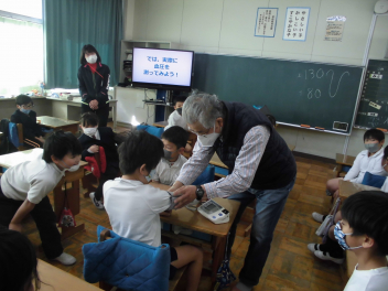 これから健康に過ごしていくために大切になことを教えていただきました。また、血圧を測定する体験もさせていただきました。子供たちは、健康について関心を高め、これからも気を付けていこうと考えていました。
