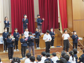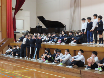 学年の発表を通して行う中で、良かったところや直したいところを確認しました。
