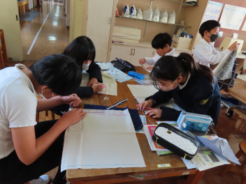 5年生ではランチョンマットの製作を、6年生で調理実習でジャーマンポテト作りをしていました。