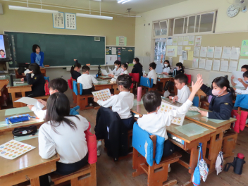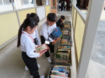 昼休みになると同時に子供たちが集まり、本を選んでいました。たくさん抱えている姿に、本が好きで楽しみにしていることがうかがわれました。