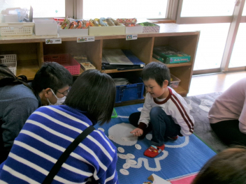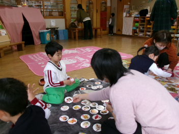 制作の後は、すごろく、カルタ、コマ回しなどを親子で楽しみました。子供が大人にやり方を教えて一緒にやったり勝負したり。楽しいひとときとなりましたlaugh