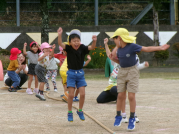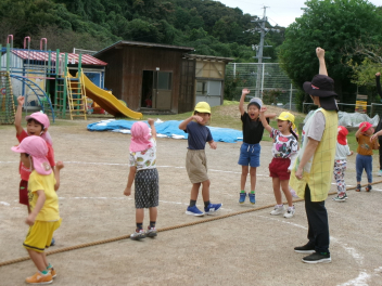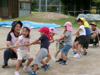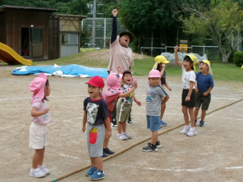 • 今日は全員で綱引きを楽しみました。綱引きはPTA種目なので運動会当日は子供たちは行いませんが、おうちの人たちが行う綱引きを子供たちに体験してほしいと考え、実施しました。