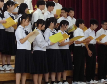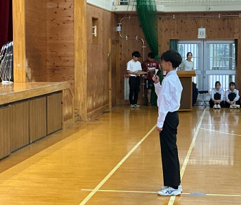10月22日の放課後、駅伝壮行会が開かれました。10月25日に浜名湖ガーデンパークで、女子9:20、男子10:30スタートで市内駅伝大会が行われます。駅伝部のみなさんは、この日に向けて夏休みから暑い日も雨の日も練習してきました。八幡中学校を代表して大会に出場します。みんなで応援しましょう。
