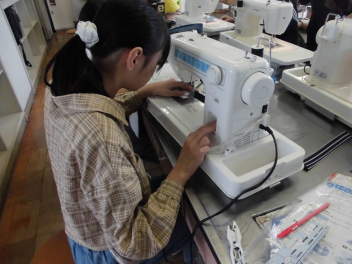 5年生のときよりも、手慣れた手つきでミシンを扱っています。