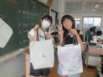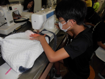 • 2学期になり、家庭科でソーイングの学習をしています。