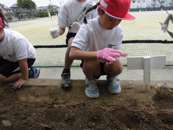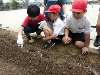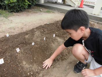 にこにこほほえみ学級の畑に大根の種を植えました。