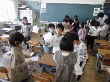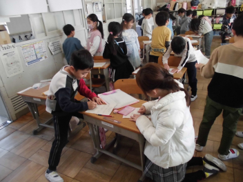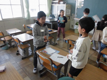 学年で集まり、発表の流れを確認したり、せりふの読み方の練習をしたりしました。