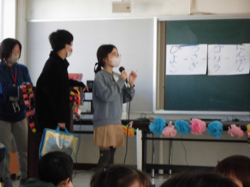 にこにこほほえみ学級でお楽しみ会をしました。5・6年生が中心となって企画、進行をしてくれてどの子も楽しく参加することができたお楽しみ会になりました。各クラスの出し物もすてきで、感想発表では、たくさんの子が手を挙げて発表していました。「大成功してよかったな。」「楽しかったね。」の声がたくさん聞こえました。