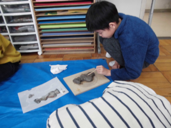 粘土をこねて自分の思った形にするのは大変でしたが、どの子も一生懸命取り組むことができました。