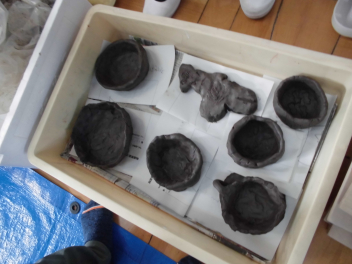 にこにこほほえみ学級では、講師の先生をお招きして陶芸教室を行い、自分で好きな形のコップやお皿などを作りました。