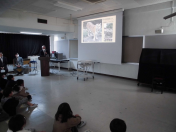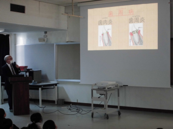 •  浜松歯科医師会から講師の先生に来ていただき、歯の健康講座を行いました。浜松動物園のアムールトラの歯の話から人間の歯についてのお話、歯肉炎から歯周炎という病気について詳しくお話を聞くことができました。