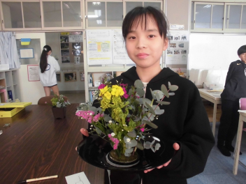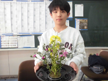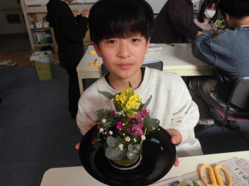 27日には、6年生の子供たち数名が、生け花教室をしました。