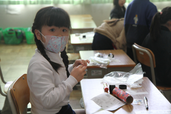 初めて使う道具に緊張気味の子どもたちでしたが、講師の先生の丁寧な指導と、保護者・CSボランティアの皆様の温かいサポートのおかげで、安心して取り組むことができました。