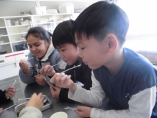 4年生の理科では、「ものの温度と体積」の学習をしています。この日は、理科室で実験をしました。みんな楽しみにしていました。実験を通して、温度によって空気の体積が変わることが分かりました。