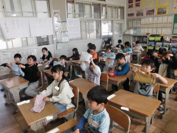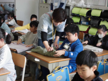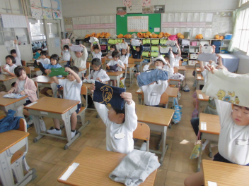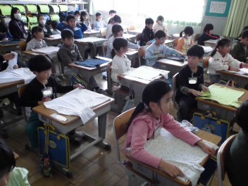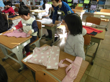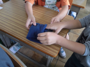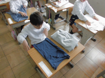 • 生活科「じぶんでできるよ」の学習で、洗濯物のたたみ方を教えていただきました。