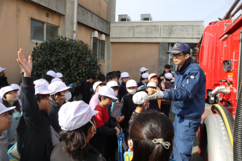 毎日欠かさず行われる点検や訓練、状況に応じた消防車の使い分けなど、教科書だけでは学べないお話に、子どもたちは真剣にメモを取っていました。