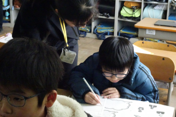 稲さんの実演を見ながら、子供たちがイラストを描いてみました。