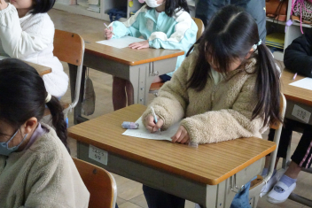 集会の最後には、3年生以降の学習でも重要になってくる九九のテストをしました。すらすら全問解くことが目標です。