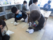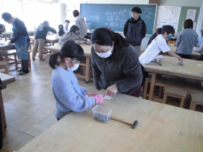 • 今日の図工は、講師の方をお招きしてトンカチの使い方を学びました。