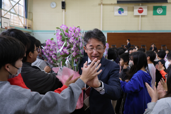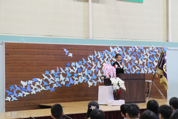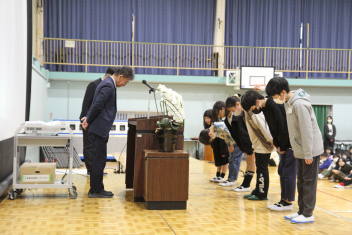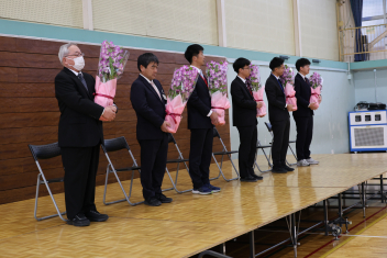 離任式の後、校長先生の退任式をおこないました。