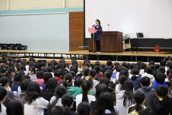 1~4年生の児童も真剣に話を聞いていました。