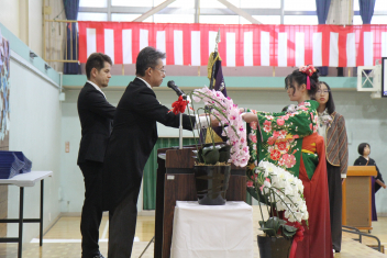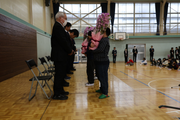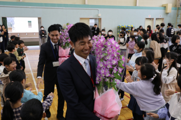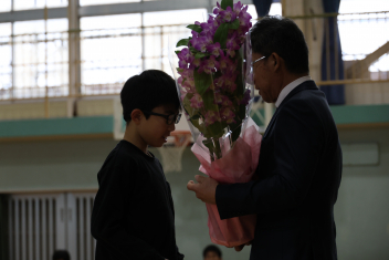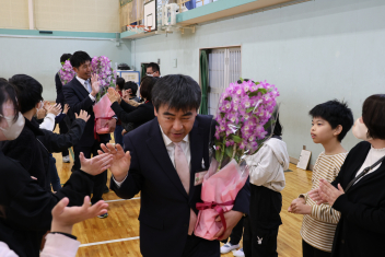 代表児童の言葉や花束贈呈、離任される先生からのお話などがありました。