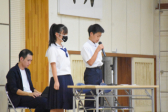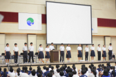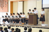 前期生徒会長や各専門委員長のあいさつに始まり、新たな生徒会長や専門委員長より今後の活動目標や計画について発表がありました。