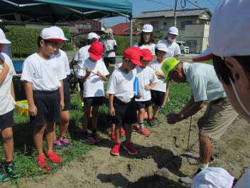 子供たちは地域の人々に種のまき方を丁寧かつ優しく教えてもらいましたlaugh