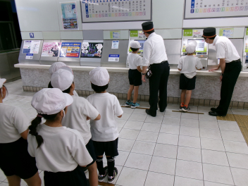 新浜松駅では、駅員さんから切符の買い方や、電車の乗り方などを教わりました